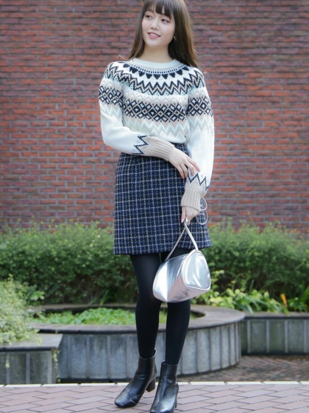 コーデの主役になりそうなノルディックニットは今季トレンドアイテム! モヘア独特のふっくらした表面感が大人可愛い仕上がり。 デニムはもちろん、タイトスカート合わせで女性らしさ溢れるstyleに♪