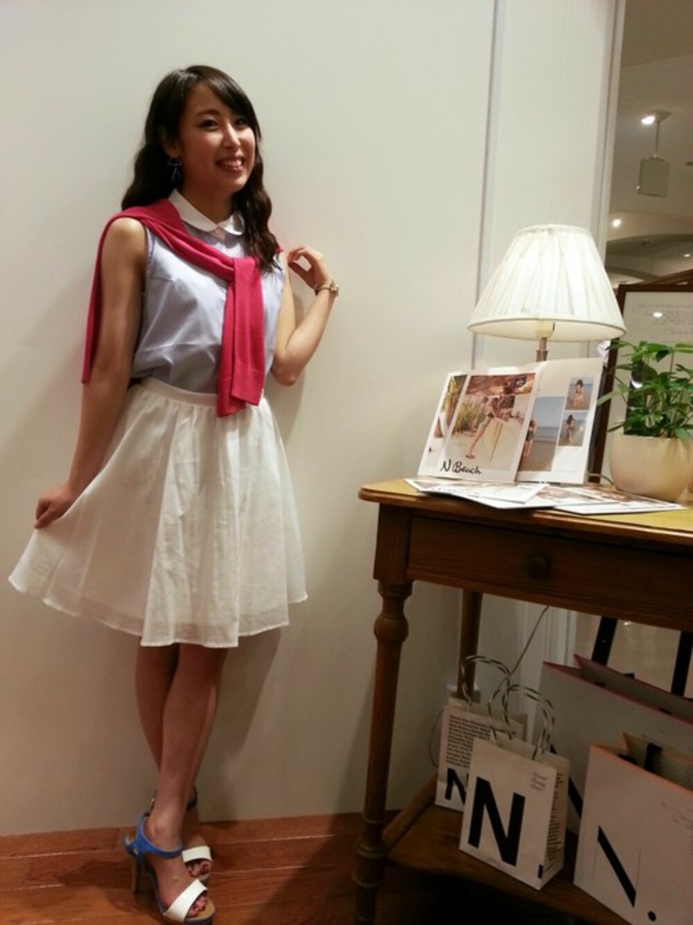 ボリュームスカートにはコンパクトなTOPSがベストバランス!これからの時期ならノースリーブのシャツがおすすめです!!