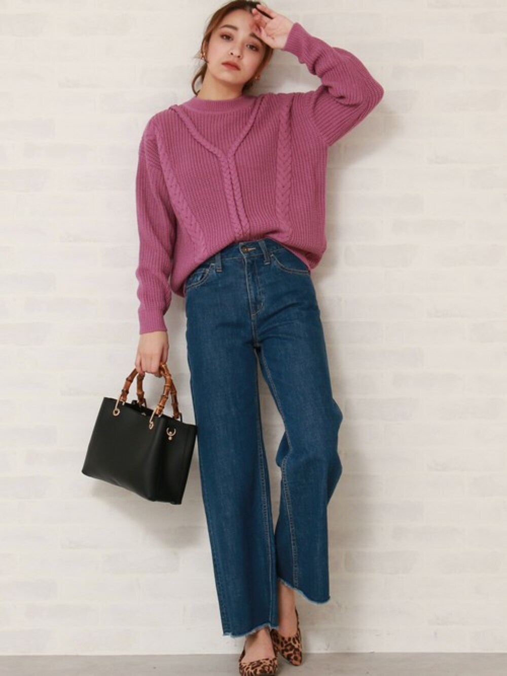 柔らかく暖かい風合いのデザインニット! ふくらみのあるアゼ編みで、立体的なブレードを付けたトレンド感のある1枚。 くすみのあるピンクはデニム合わせで、ちょっぴりレディなカジュアルstyleに♪