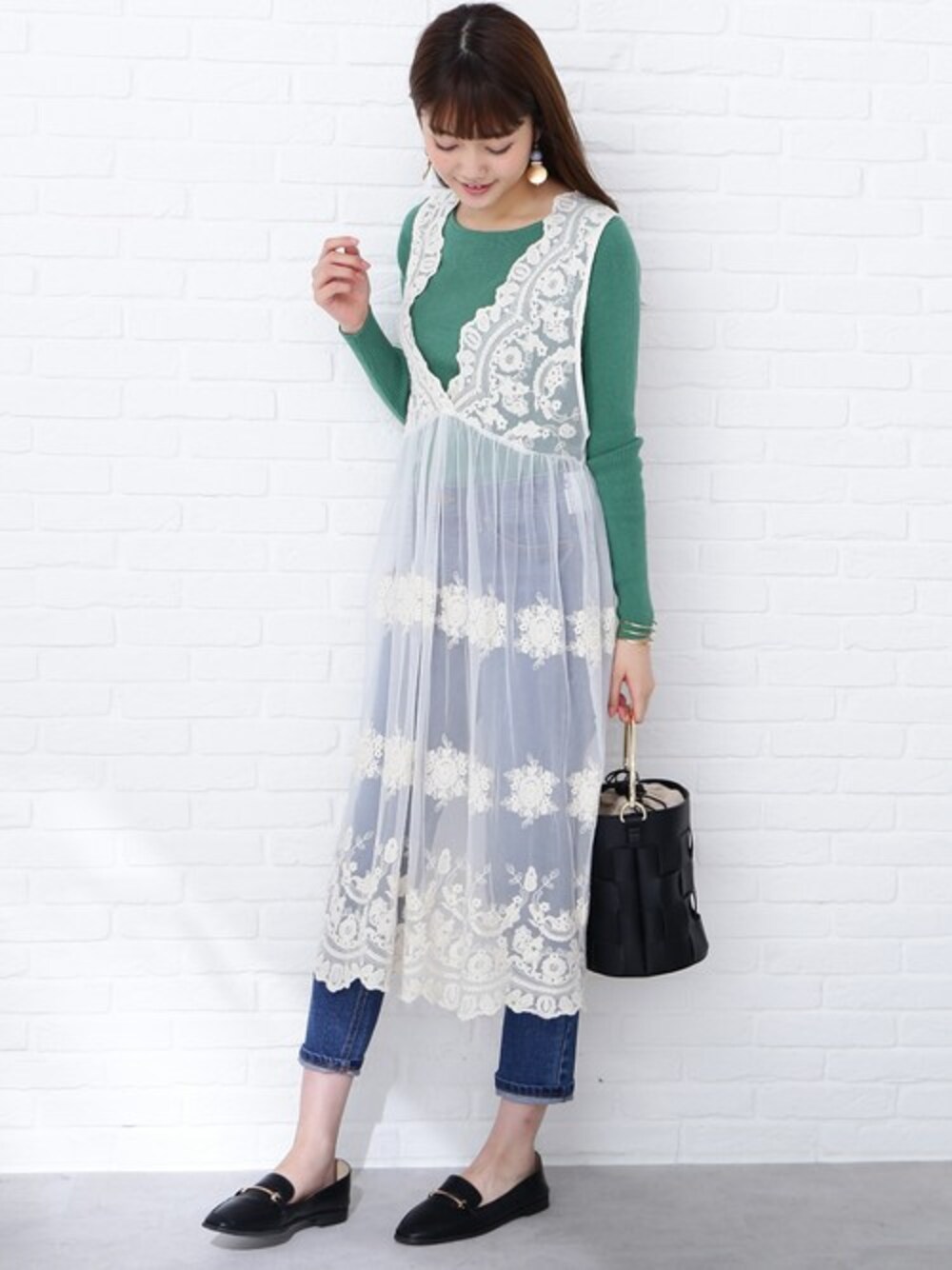 カジュアルも女性らしい"レイヤードstyle"を叶えるワンピース! 繊細な胸元のカットワークや刺繍、シアー感が生み出すエアリーなバランスが魅力のアイテム。 いつものデニムに1点投入するだけで、トレンド感溢れるstyleに★