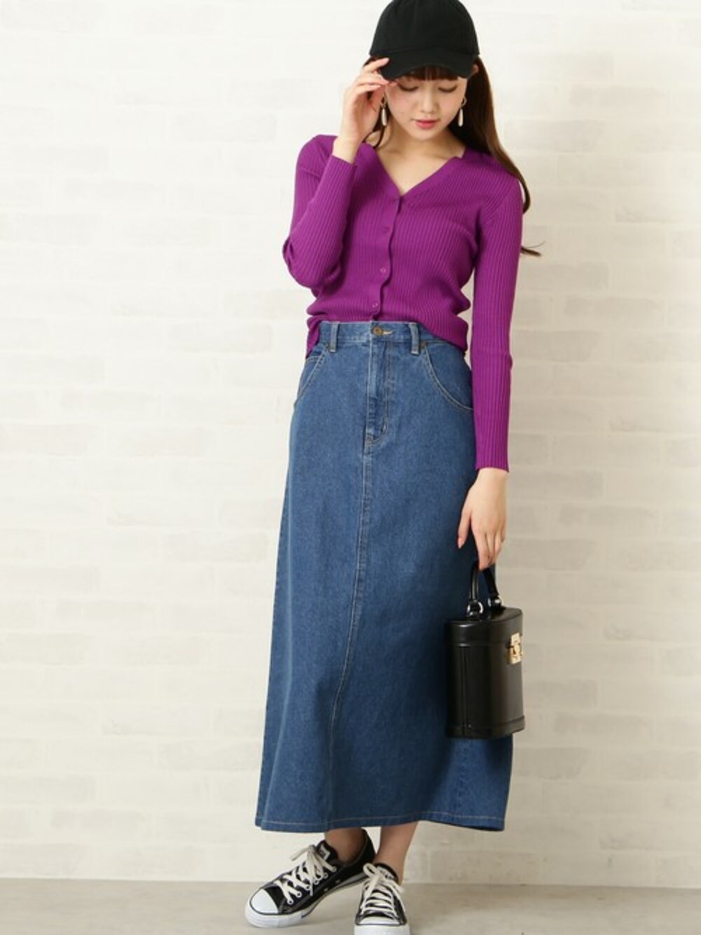 ベーシックなVネックのリブニットカーディガン! 伸縮性あるリブで仕立て、ボディに沿ったシルエットが女性らしい印象に。 今季トレンドカラーのパープルは、デニムとの相性抜群★