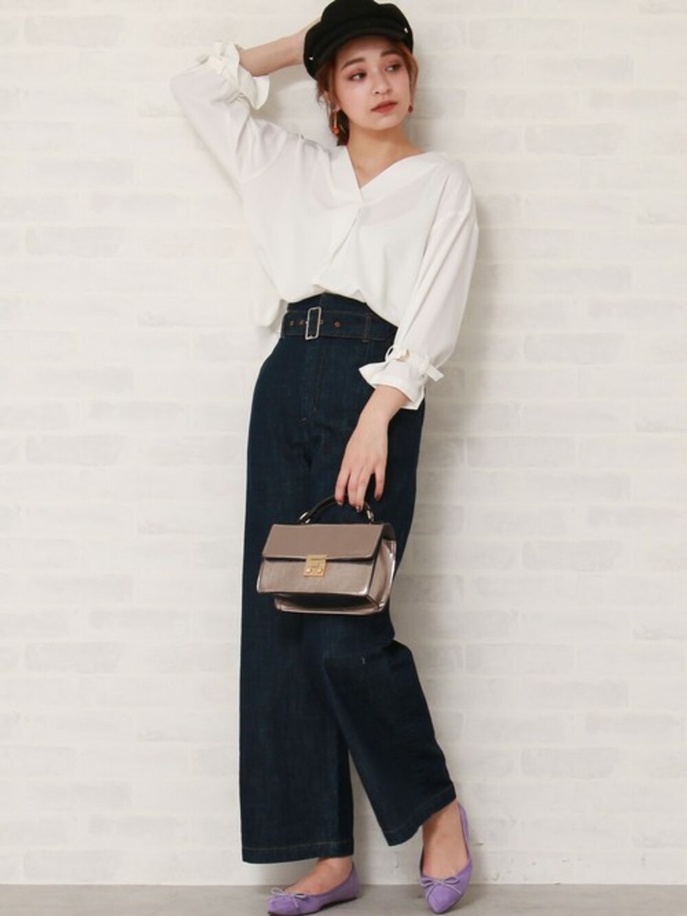 トレンドのコルセットベルトがセットになったワイドデニム! ハイウエストデザインでスタイルアップも狙える1本。 トップスタックインするスタイリングもぐっとトレンド感UP★