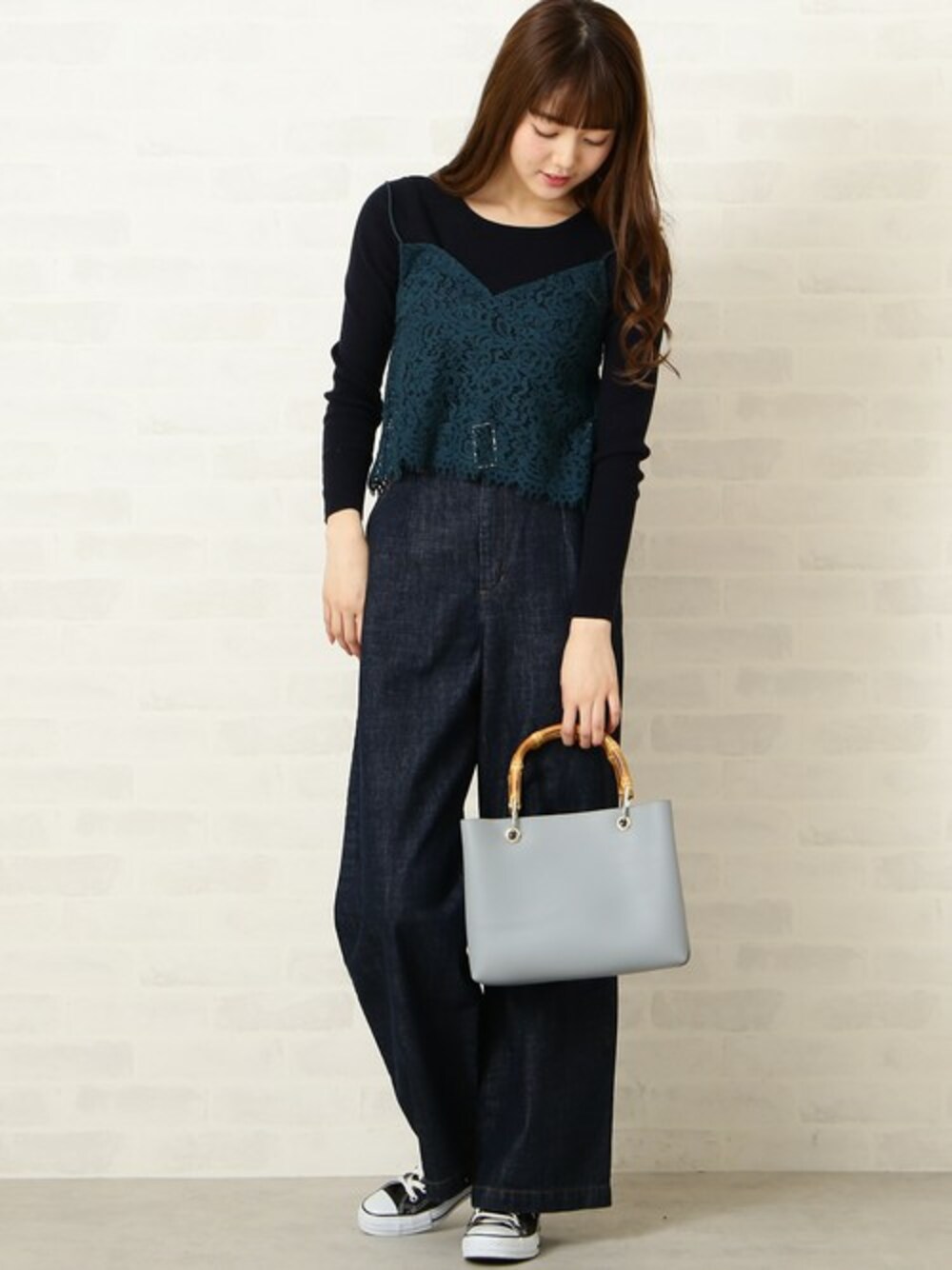 重ね着を存分に楽しめるレースビスチェ! トレンドのレイヤードstyleがプラスワンで完成する、とっておきのアイテム。 いつものデニムをちょっぴりレディに着こなして♪