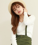 細めのサスペンダーで大人っぽく仕上げたワイドデニムに、スッキリとしたリブニットを合わせて、女性らしさも忘れないカジュアルスタイルです!