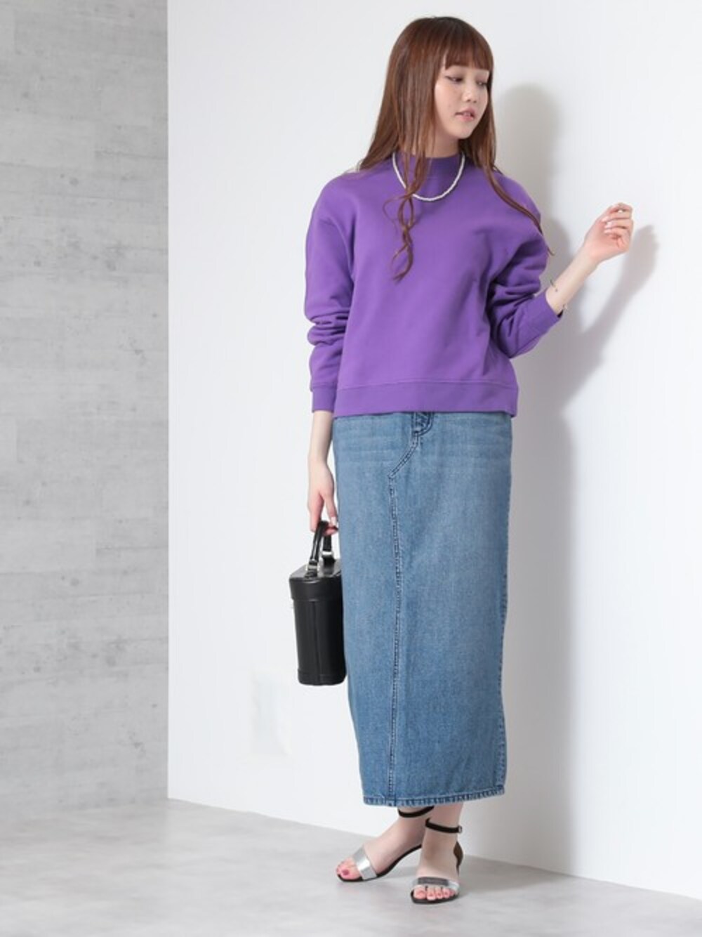 今季の最注目カラーとされているパープルを基調としたスタイリング。インパクトカラー×デニムで憧れの「こなれ感」をすぐに取り入れられます♪