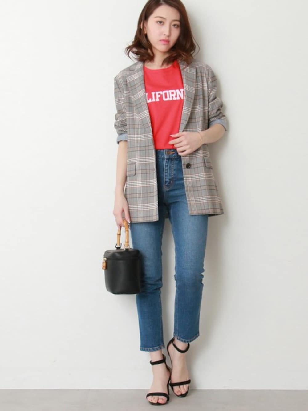 この春、ジャケットにロゴTを合わせたカジュアルMIXスタイルが旬。BIGシルエットのジャケットをセレクトすれば、少しかっこいいメンズライクな印象に。