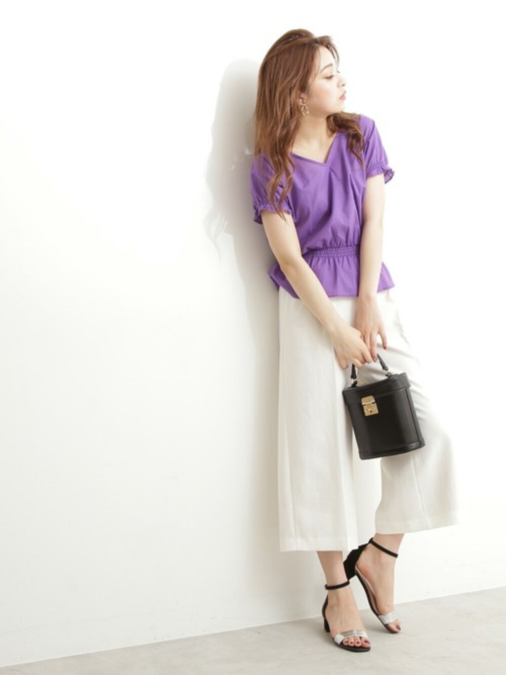 自然とスタイルUPが叶うコンパクトトップスに、マリン風のガウチョパンツを合わせたメリハリのあるコーディネート。
