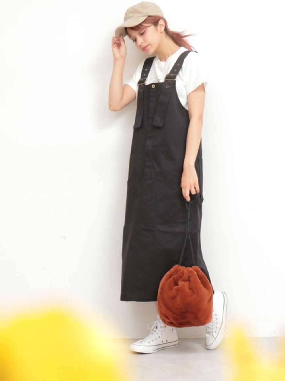 UNIVERSAL OVERALLらしい、大人なワークスタイルを演出できるジャンパースカート。カジュアルになり過ぎない、さらっとしたUNIVERSAL OVERALL定番のツイル生地はN.の別注で実現。