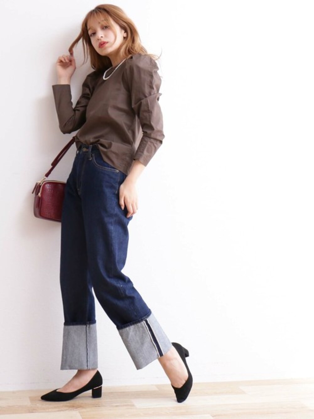 袖のデザインディテールにこだわった上品な印象のブラウス。デニム合わせはもちろん、タイトスカートなどを合わせてキレイめに仕上げても○