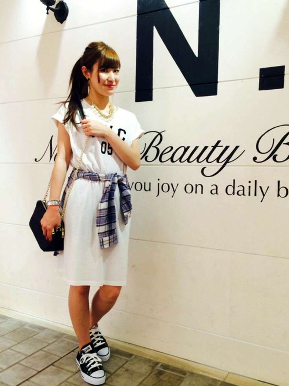 ロゴTがトレンドの今シーズン。これからの季節ならワンピースで取り入れるのも良いですよね♪ アウトドアの予定が増えるこれからのシーズンはスニーカーやチェックシャツで遊び心をプラスして♪