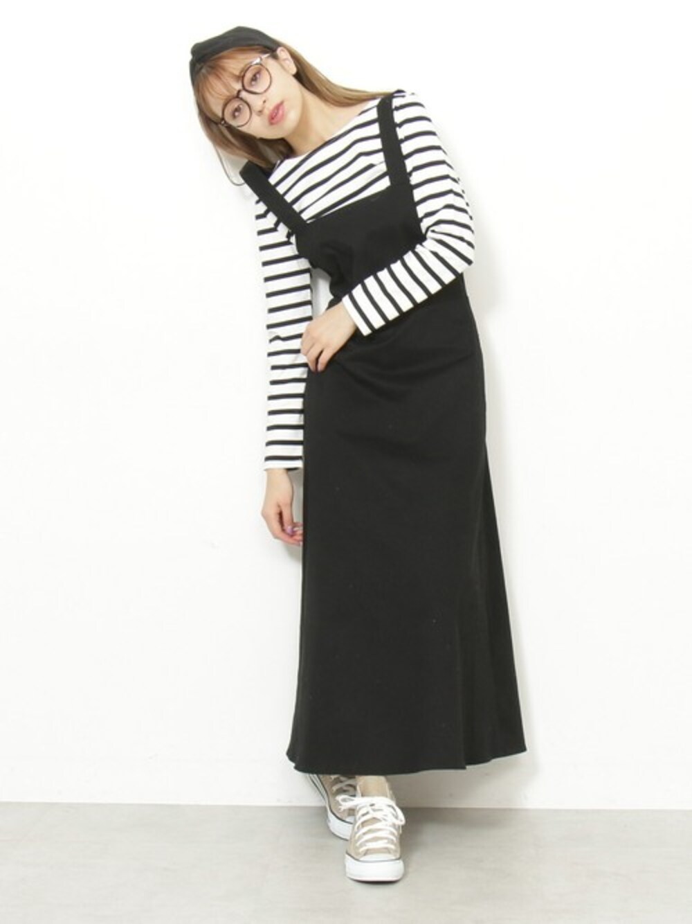 ウエストラインをしなやかに見せてくれるデザインが 女性らしいジャンパースカートです。 スニーカーやメガネをプラスして、 とことんカジュアルに仕上げるのもおすすめ。