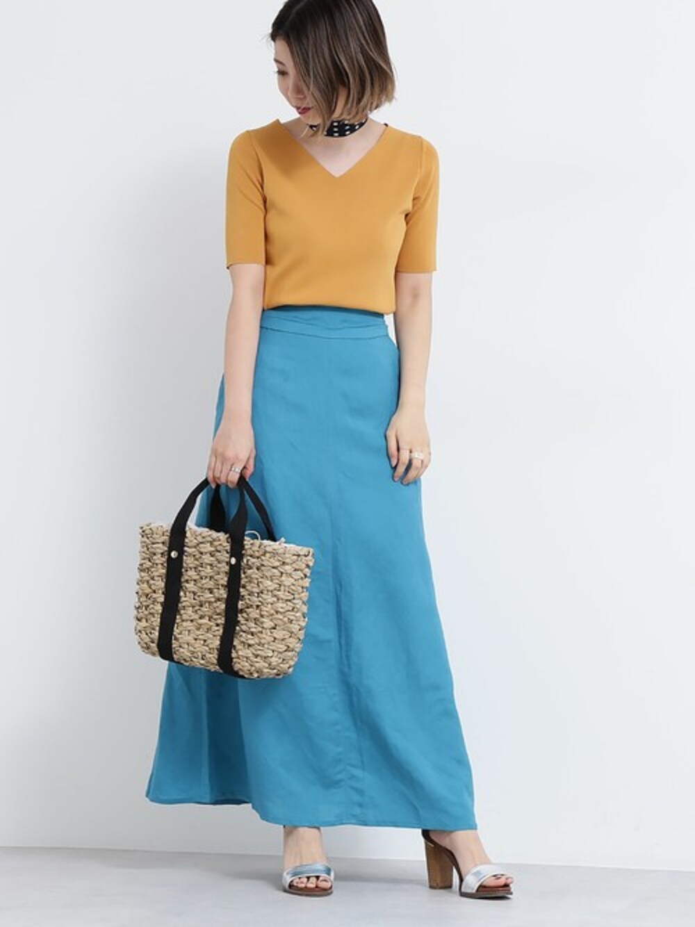 カラー×カラーの上級者コーディネート。アイテム自体はベーシックなデザインのため、着回し力もバツグン!