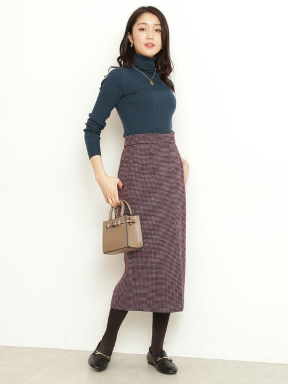 フィット感のあるニット×タイトスカートで、 女性らしい、しなやかなラインを活かしたスタイリング。 こっくりとしたグリーンカラーのニットやローファーが、 ヴィンテージライクな雰囲気を演出してくれます。