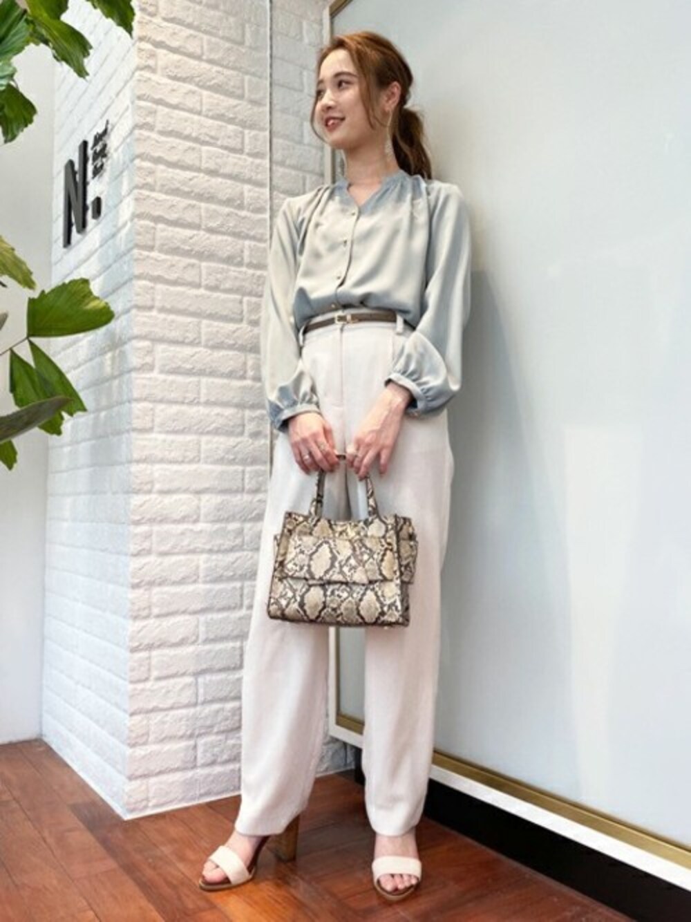 N. STAFF(N. Natural Beauty Basic* OFFICE)のシャツ/ブラウス「ゴールド釦シャーリングブラウス」を使ったコーディネート