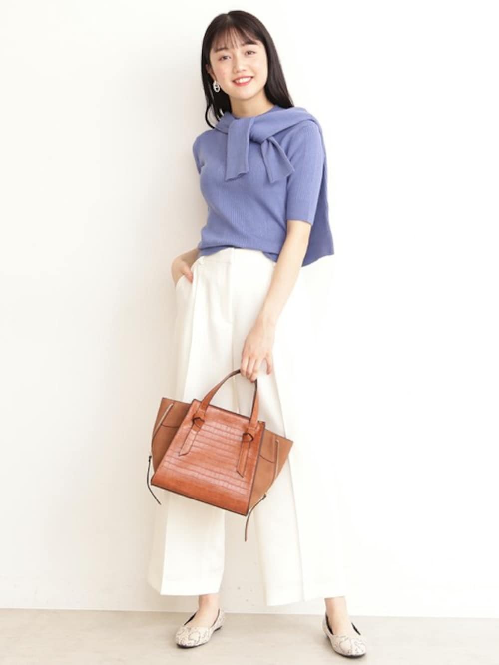 周りと着こなしの差がつくアンサンブルニット。春は思い切って差し色を選んで。 ホワイトのパンツはカラーアイテムと相性が良く、コーディネートを華やかにしてくれる秀逸アイテムです!