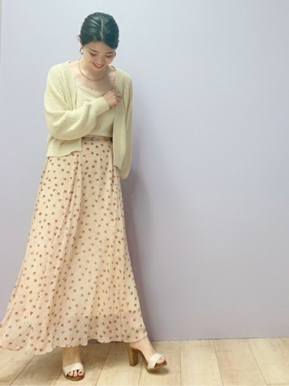 トレンドのエアリー感のあるスカートが入荷しました。歩くとふわっと揺れる素材でとっても可愛い1枚です♡ショートカーディガンを合わせるとマキシ丈にもバランスよく着られます☺︎
