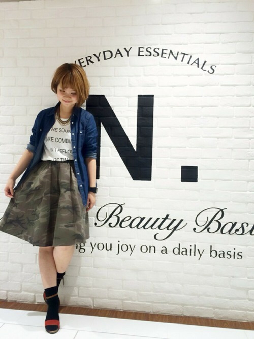 人気の迷彩柄スカートにミディ丈のボリュームスカートが仲間入り♪ ビジューネックレスやヒールのシューズで合わせるカジュアル過ぎないアレンジがおすすめです!