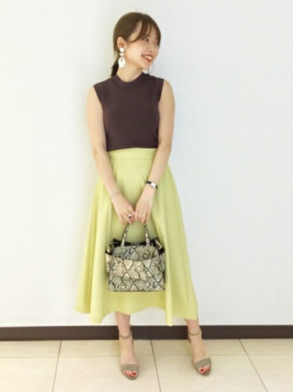 N.で人気の総針ニットのノースリーブバージョンです!キレイ目なスカートに合わせて、通勤スタイルにオススメです!スカートは、夏仕様のサラッとした素材なので軽やかにお召しいただけます◎