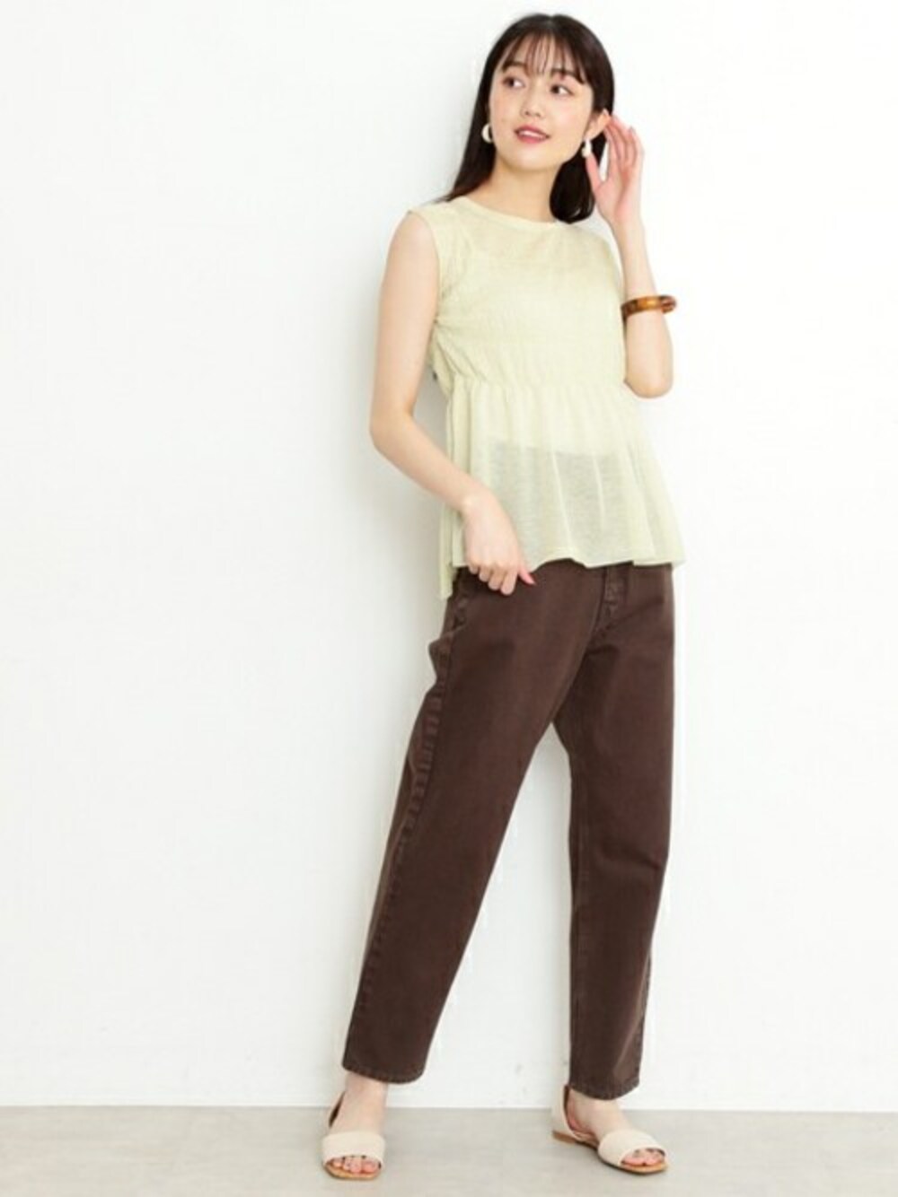 程よい透け感と絶妙なラメがポイントのシャーリングトップス。いつものデニムと合わせても◎ですが、深みのあるカラーデニムと合わせると鮮度UPします♪