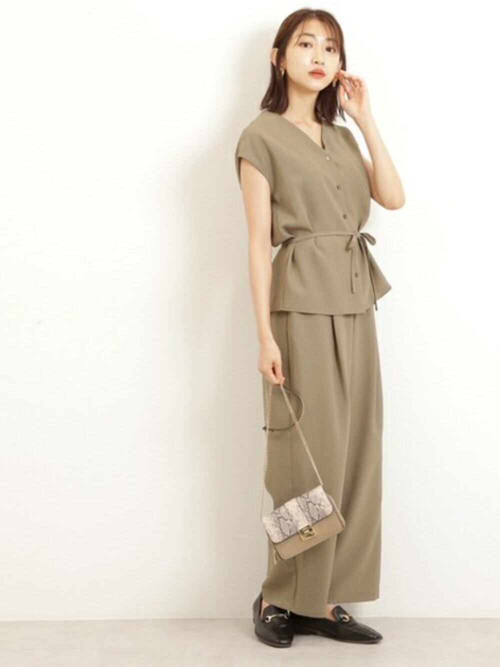 麻調素材を使用した、夏にぴったりのセットアップが登場。ウエストを絞ったリボンがスタイルUPも叶えてくれます。ウエストにもゴムが施されており、とにかくリラックスして着られる1枚です。