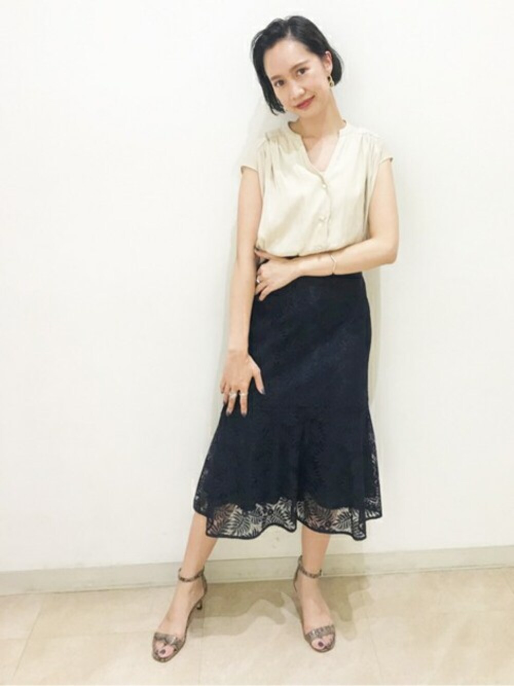 N. STAFF(N. Natural Beauty Basic* OFFICE)のスカート「◆リーフレースペプラムスカート」を使ったコーディネート