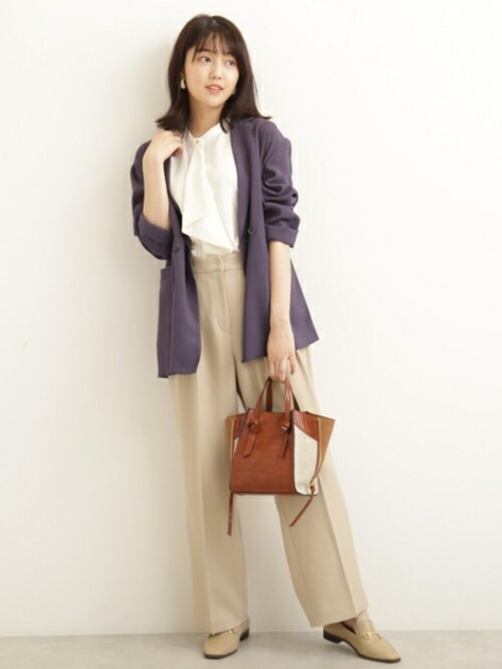 いつもの通勤スタイルに羽織るジャケットをオーバーサイズにするだけで、一気におしゃれな秋の着こなしに。さらにクールブルーはキレイめな印象を崩さずに着られるおすすめカラーです。