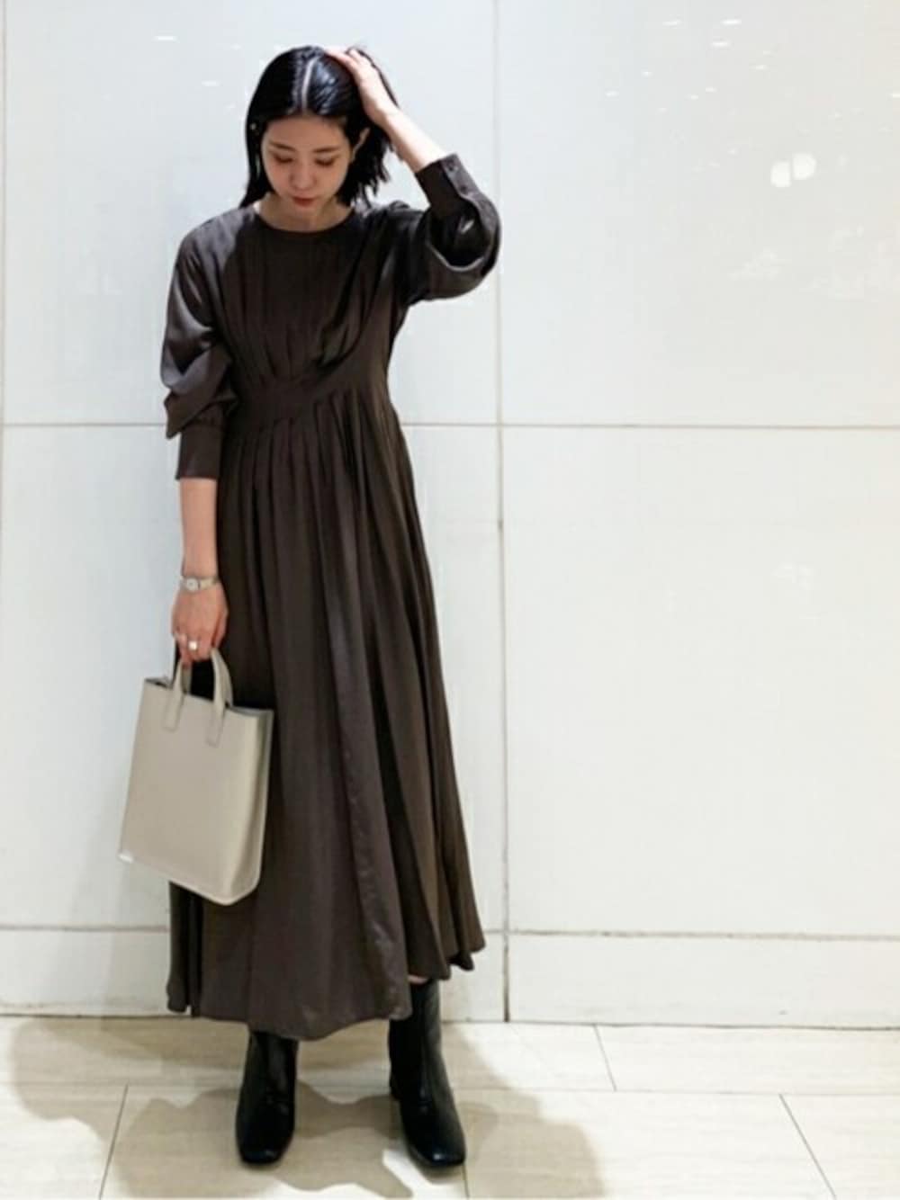 人気のウエストタックワンピースが秋冬バージョンで入荷しました! 落ち感のあるシルエットで全体的にスッキリみせてくれます♡ ウエストタックの効果でスタイルアップもできます♪