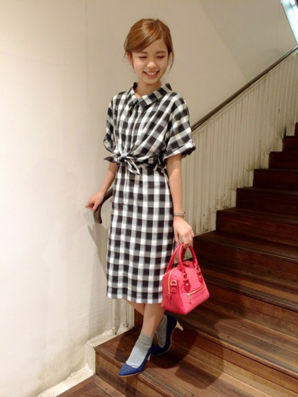 ギンガムチェックのワンピースをさらりと着こなして。夏のお出かけやデートにもピッタリです♪