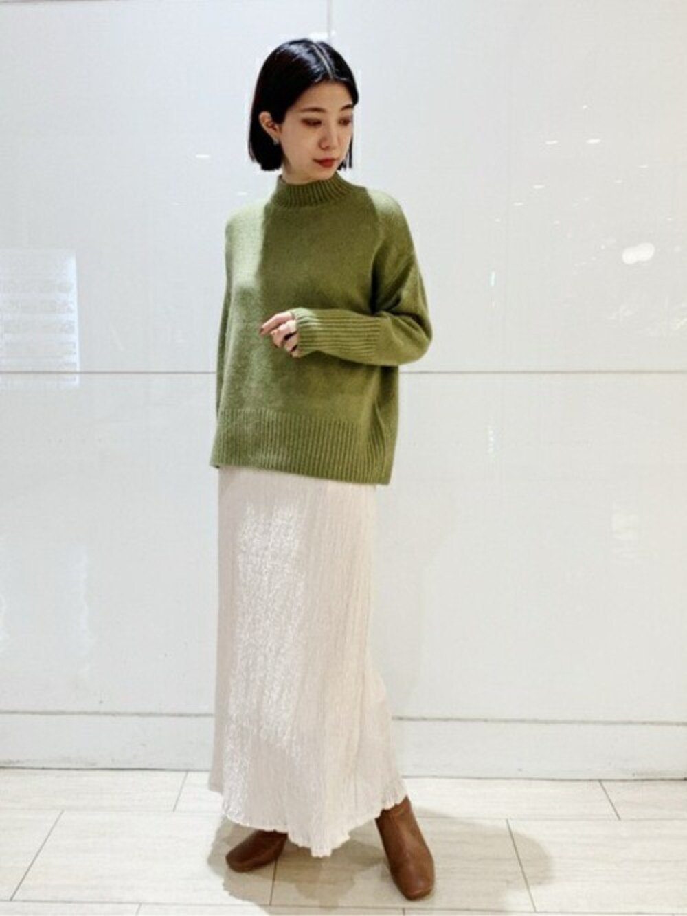 ゆったりシルエットのプランプニットは、柔らかくて肌触りがいいのでとっても着やすいですよ♡ふわっとした素材なのでボトムはすっきりラインで合わせると、甘すぎずに大人可愛いスタイリングができます!