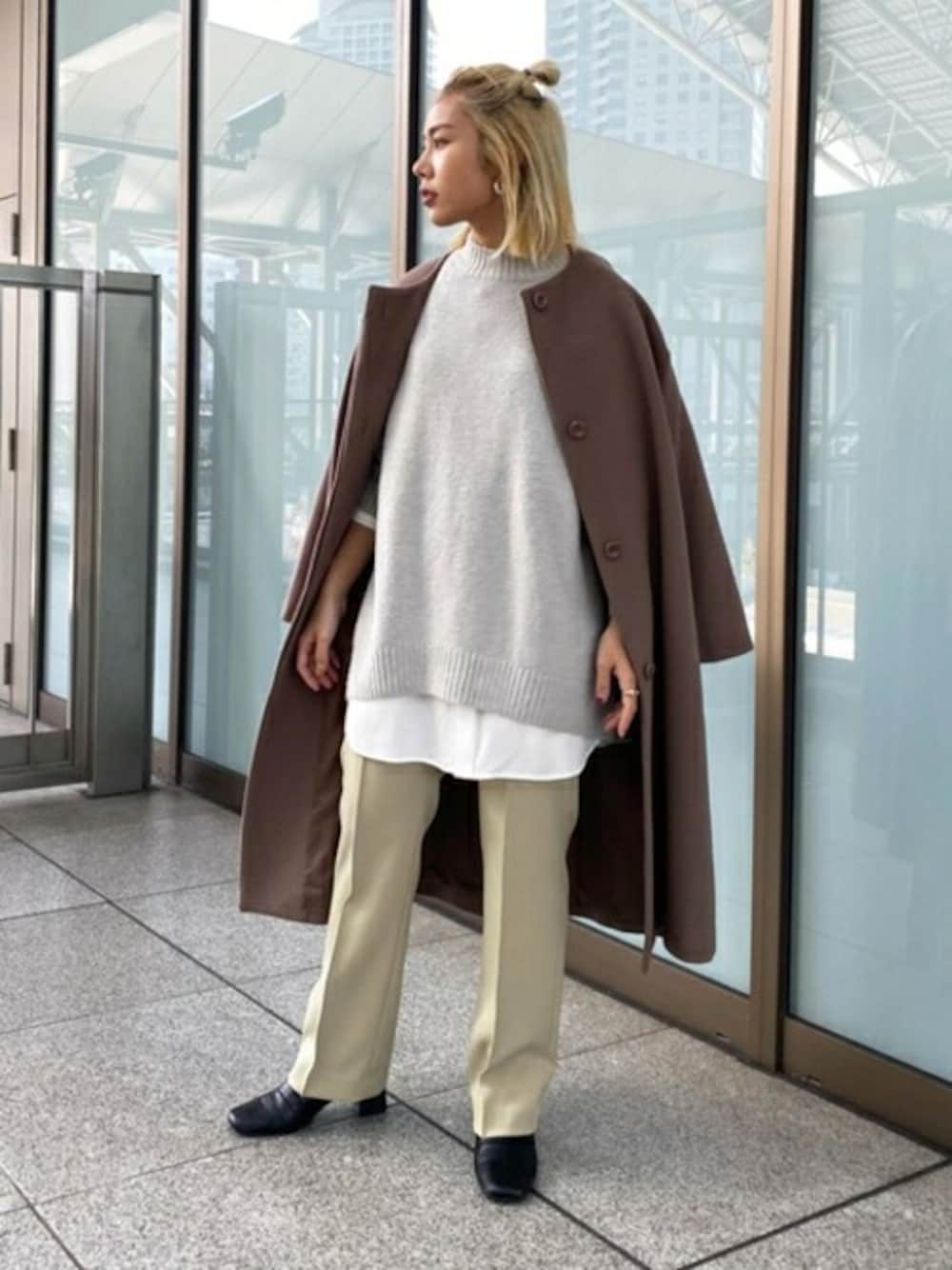 N. STAFF(N. Natural Beauty Basic* OFFICE)のノーカラーコート「◆ビーバーメルトンノーカラーコート」を使ったコーディネート