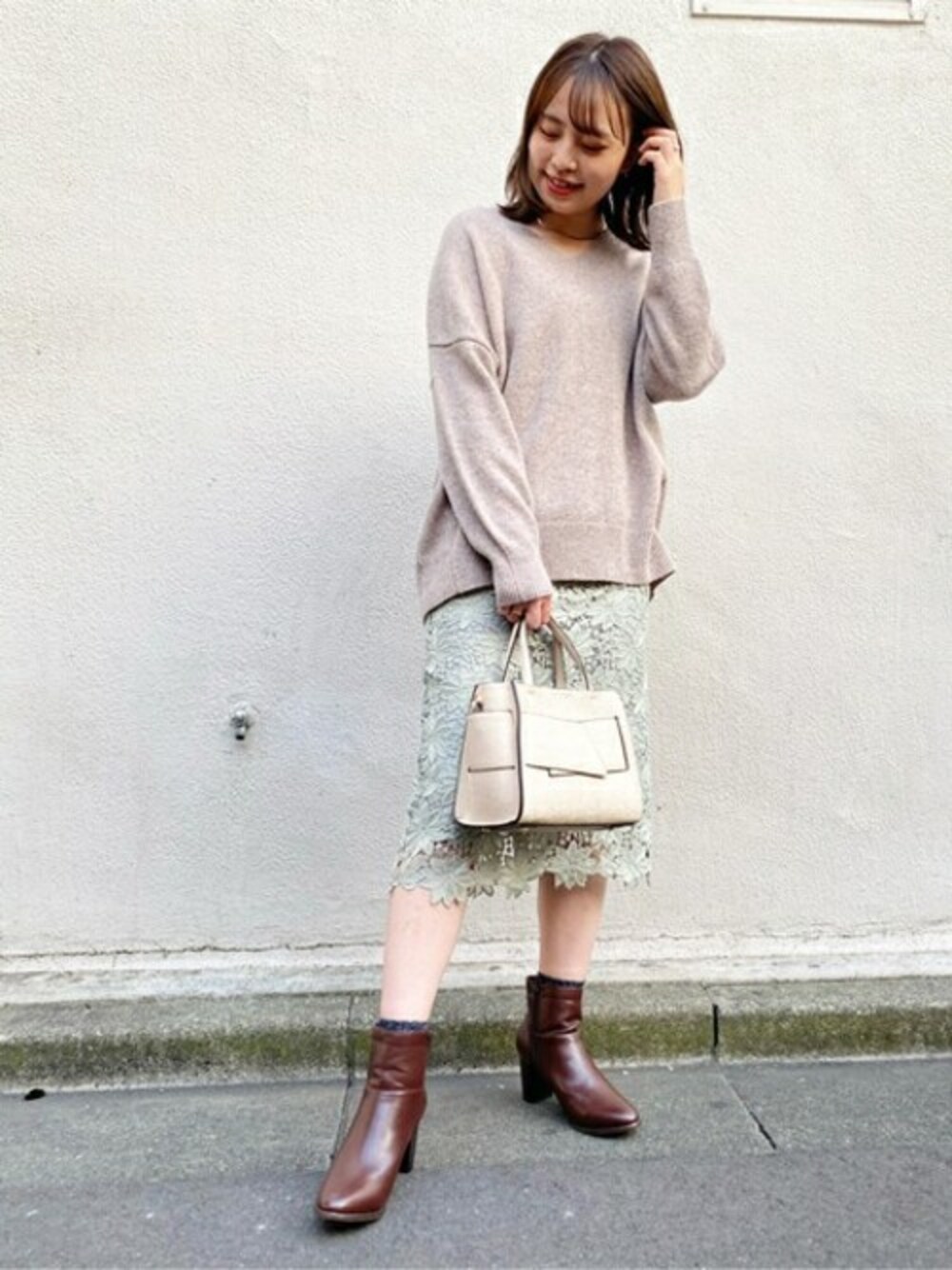 ONOFF着回せるN.で定番のケミカルレーススカート。オーバーサイズのニットとも好相性!フェミニンなコーディネートに仕上がります♪
