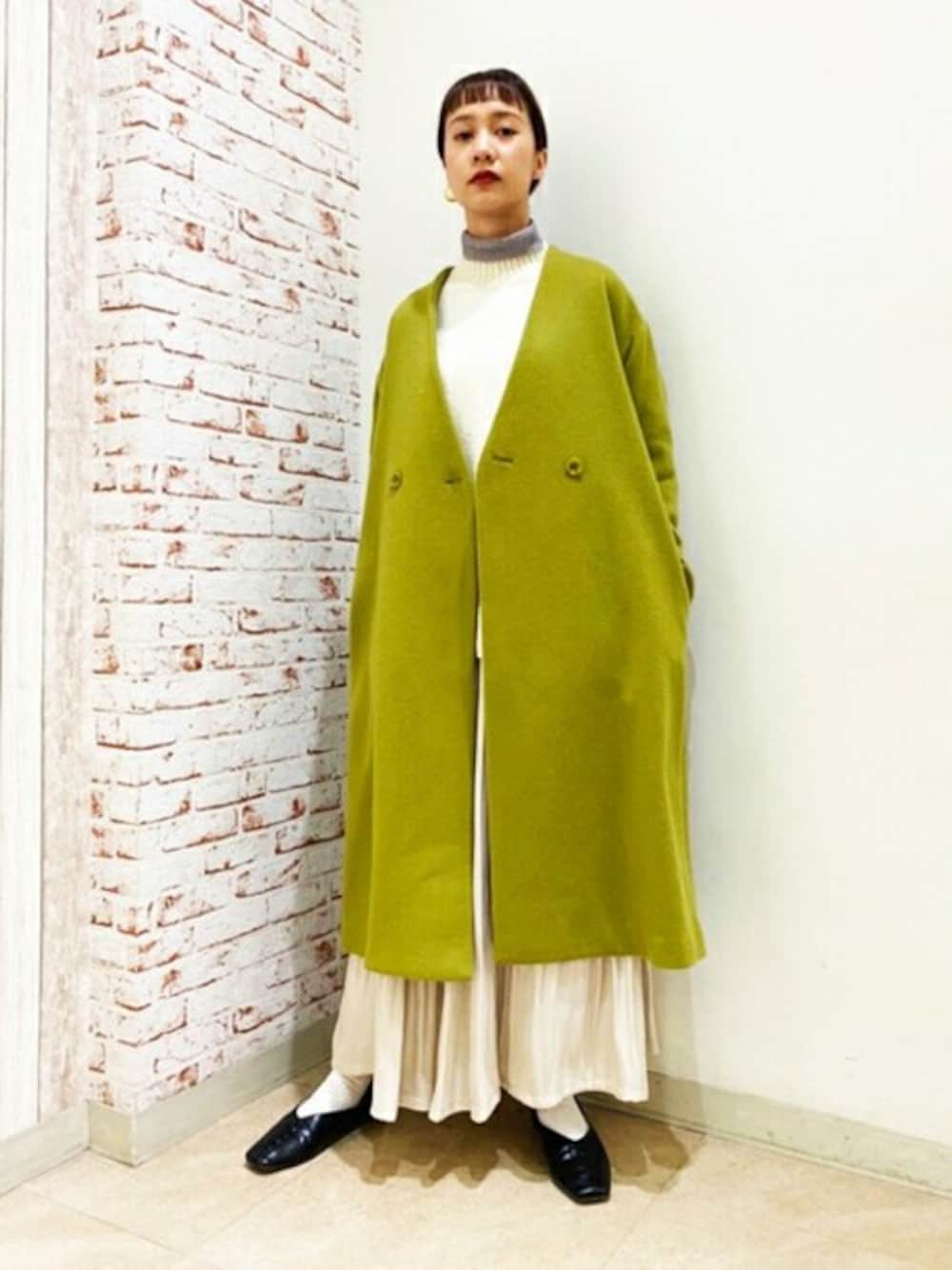 N. STAFF(N. Natural Beauty Basic* OFFICE)のノーカラーコート「◆ビーバーメルトンノーカラーコート」を使ったコーディネート