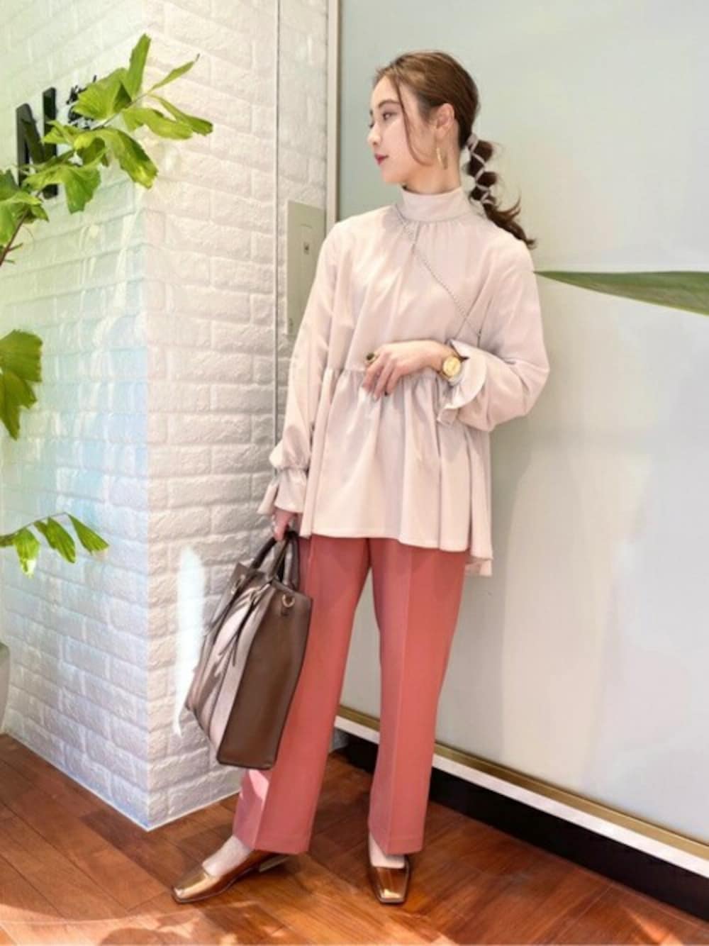 N. STAFF(N. Natural Beauty Basic* OFFICE)のシャツ/ブラウス「ハイネックペプラムブラウス」を使ったコーディネート
