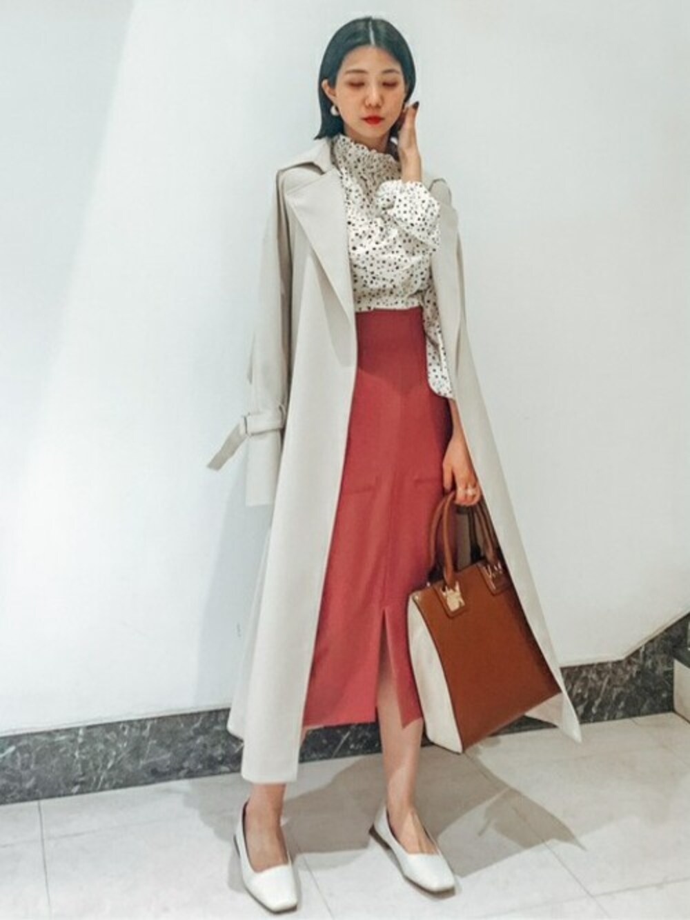 ネックデザインが可愛いブラウスは綺麗めな通勤コーデやデニムと合わせて普段使いで着ても素敵です♡一見シンプルなトレンチコートですが後ろがドレープヨークになっているので今までのトレンチとは少し違った雰囲気になります!