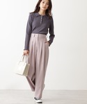 軽く立ち上がりのあるフリルネックが可愛らしく一枚で華やかな印象を与えてくれます♪ さらっと柔らかい生地感で着心地も抜群です! 淡いパープルのパンツを合わせて春らしくまとめてみました☺︎