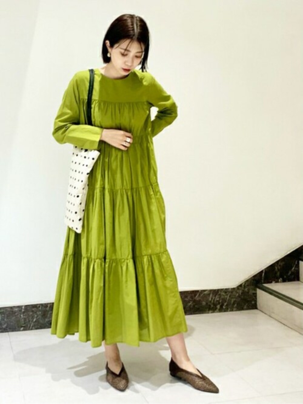 ティアードのワンピースは今年1枚もっておきたいアイテムです!コットンローン素材を使用しているのでたっぷりのギャザーでも程よいボリュームで着られてシワが目立ちにくいのもポイントです。