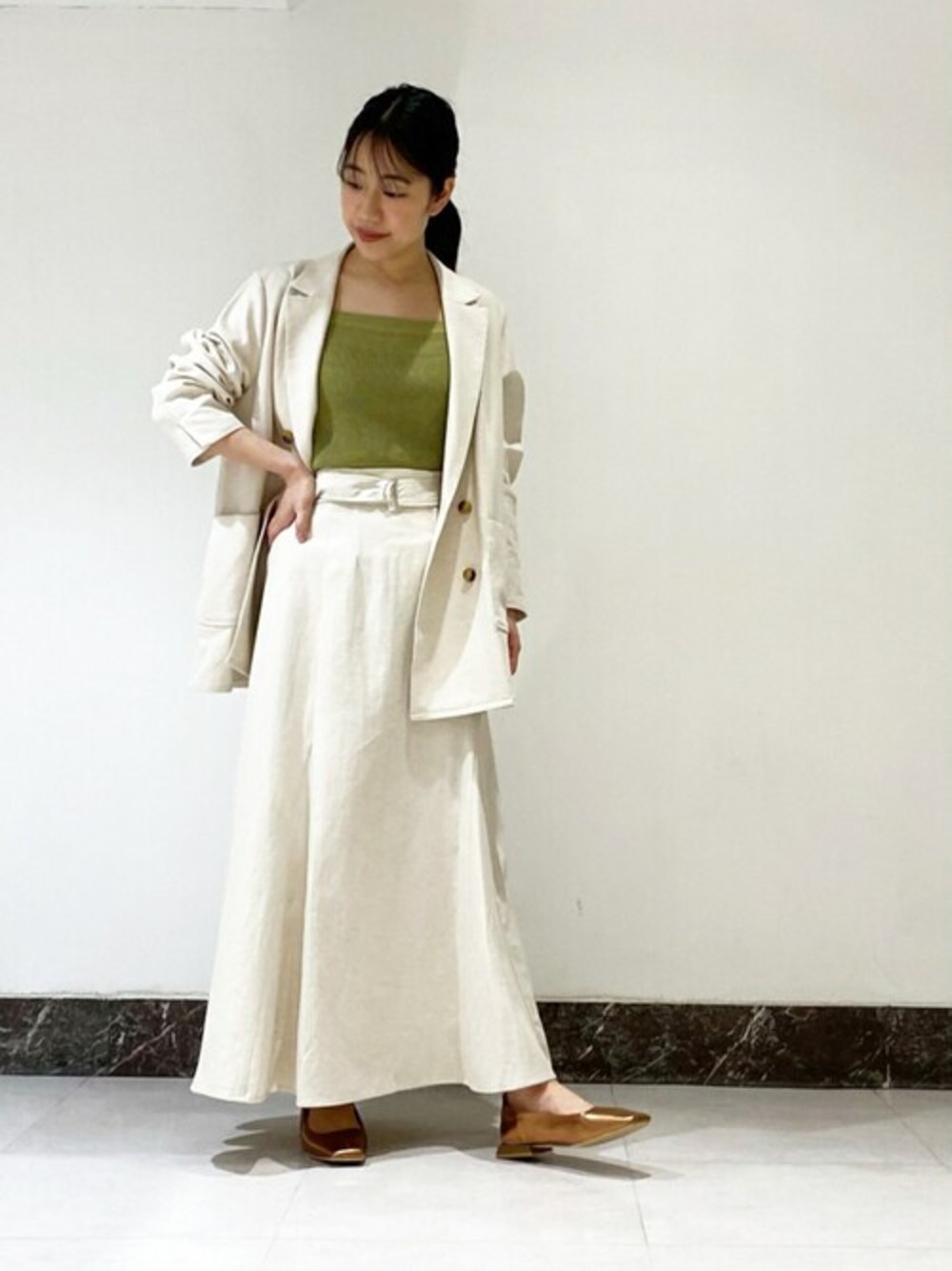 今年の春も引き続き人気のセットアップコーデです♪麻混でさらっと羽織れるので、今から初夏まで長い期間で着て頂けます!