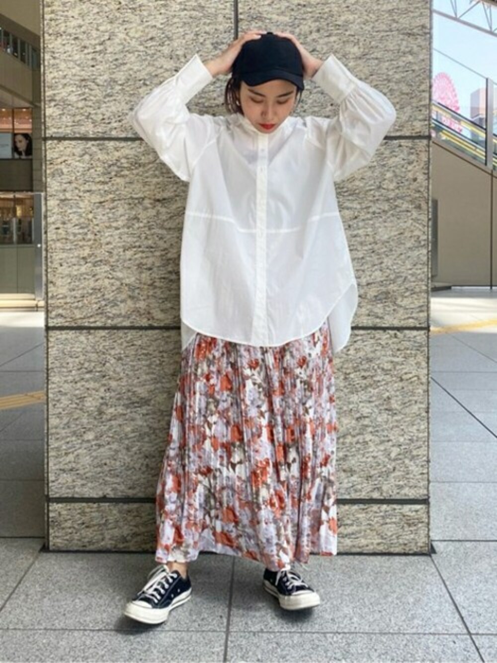 大人なフラワースカートが入荷しております。消しプリーツのデザインになっており、プリーツだけどフレア感もあり甘すぎずカジュアルな方でも使いやすい一枚です◎シャツ合わせがオススメです。