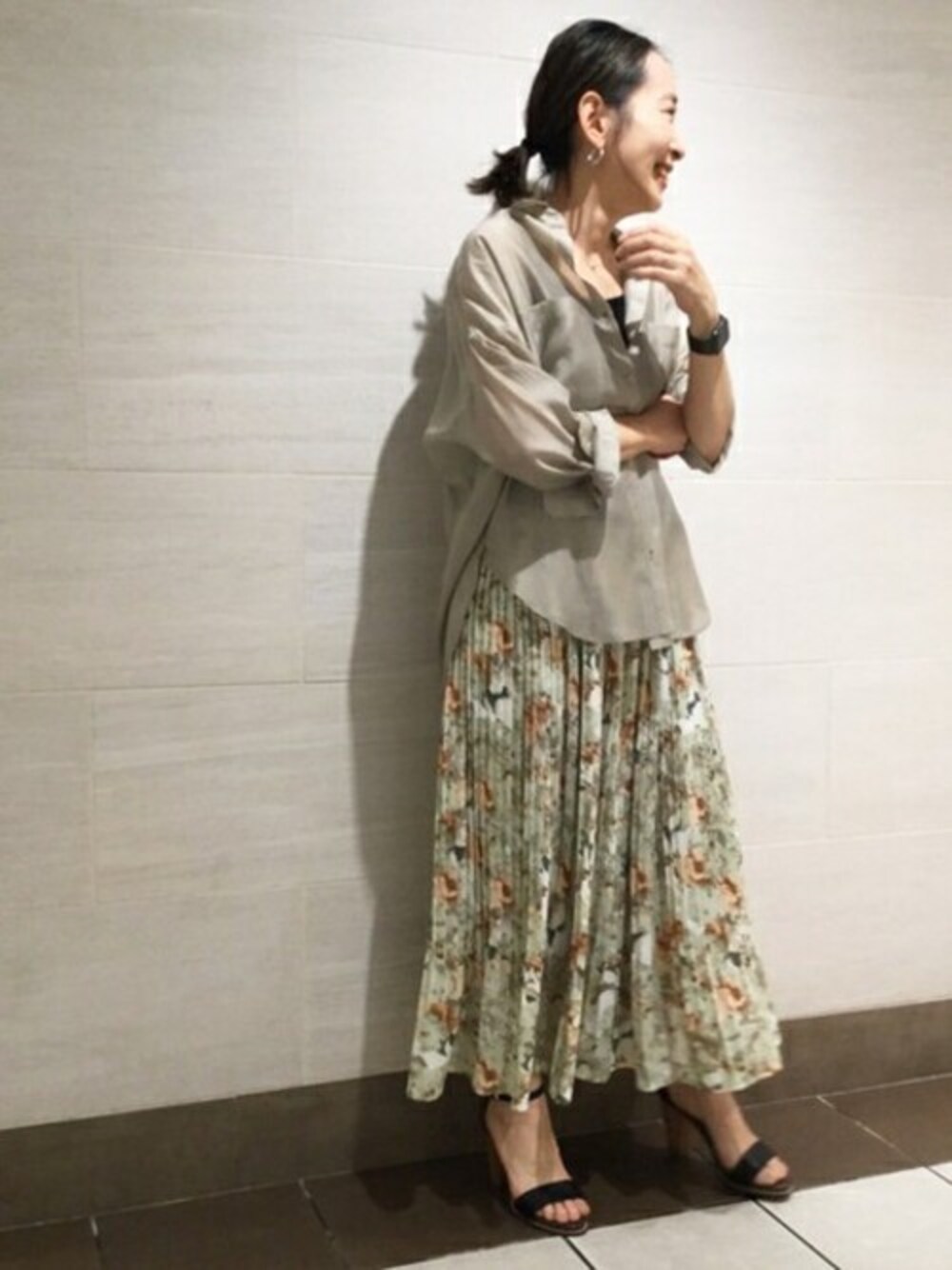 アートのような花柄が1枚で大人っぽく爽やかに着こなして頂けます◎ シアーシャツと合わせると春のリラックスコーデに♫