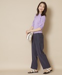 人気のドッキングブラウスでキレイめなワントーンのコーデです。カジュアル使いはもちろん、テレワークにもオススメです。