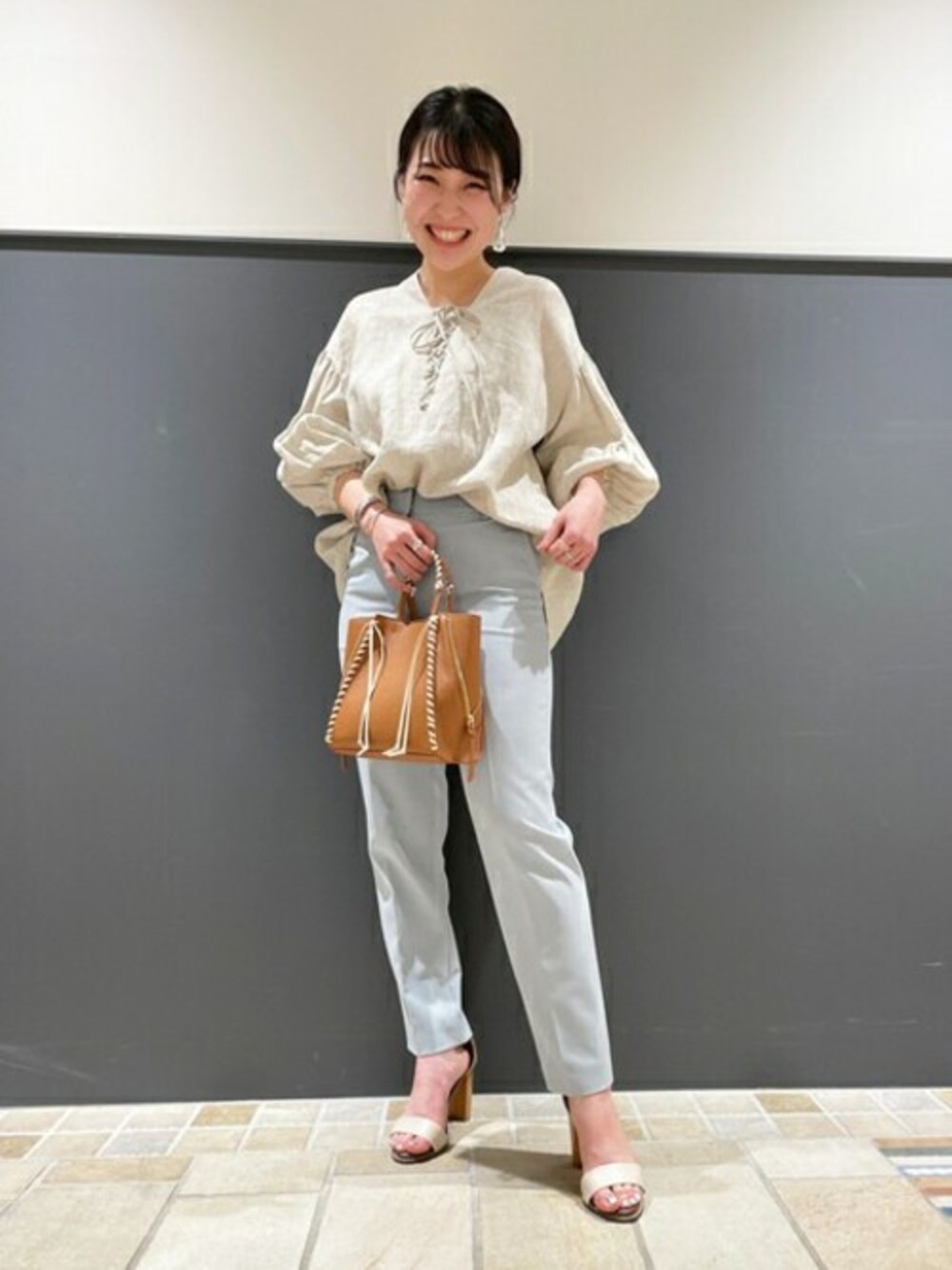 麻100%の軽い素材感のトップスに、清涼感のあるボトムス合わせがこれからの季節にぴったりです! ON/OFFどちらでも◎