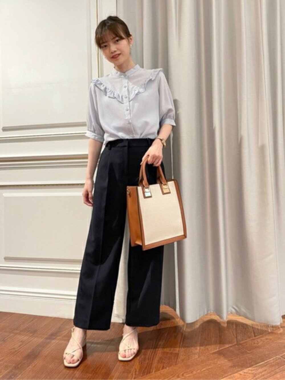 N. STAFF(N. Natural Beauty Basic* OFFICE)のシャツ/ブラウス「スタンドネックフリルブラウス」を使ったコーディネート