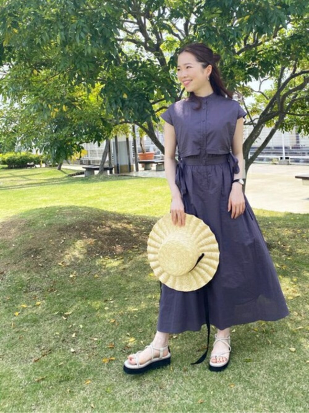涼しげなコットンワンピ♪ フレンチスリーブなので 二の腕カバーも出来て安心感があります。 コットン素材で足元も透け感があるので 重たい印象にならず小柄の方もお召し頂けるワンピースです!