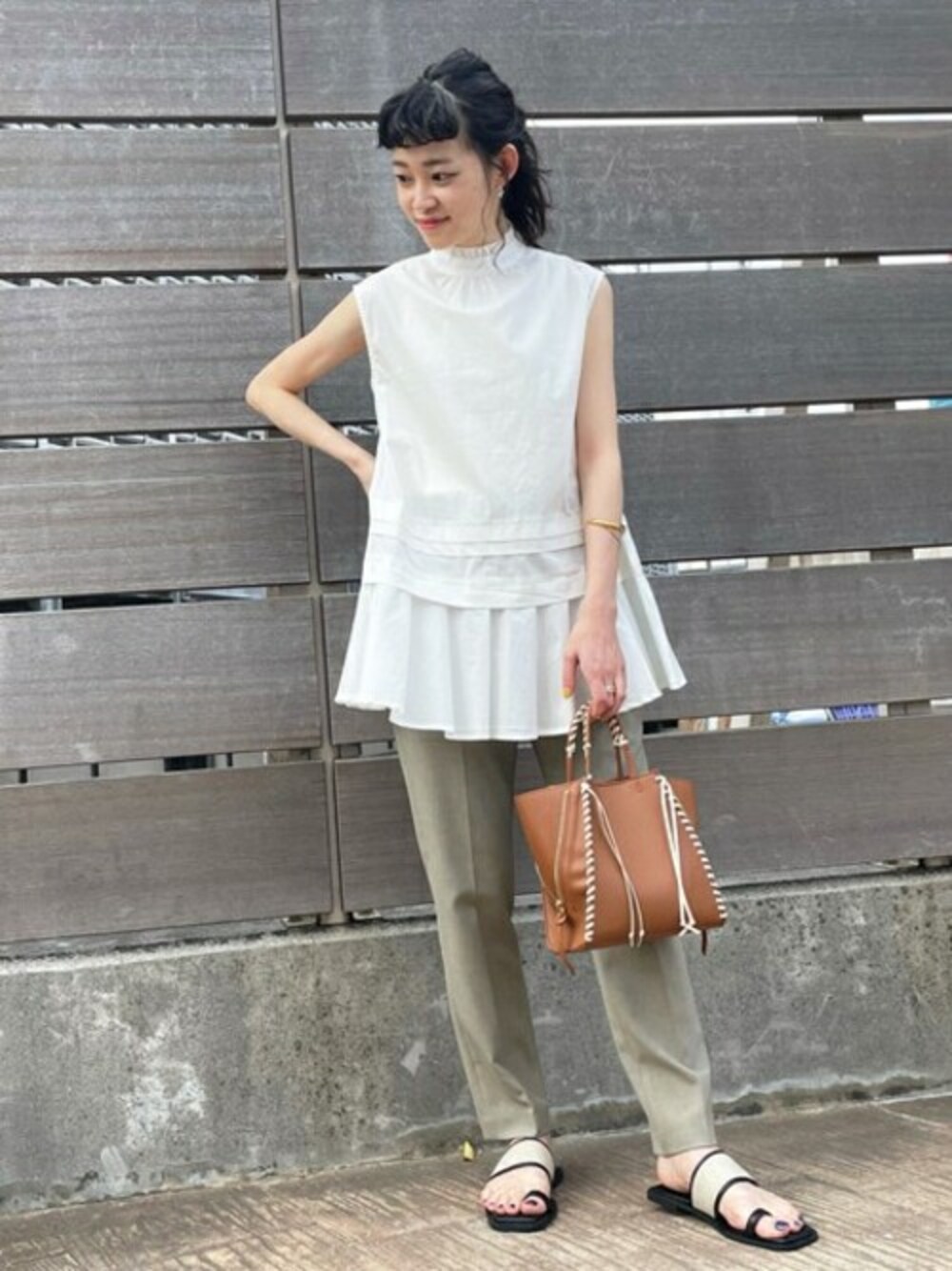 N. STAFF(N. Natural Beauty Basic* OFFICE)のシャツ/ブラウス「キリピコフリルネックブラウス」を使ったコーディネート