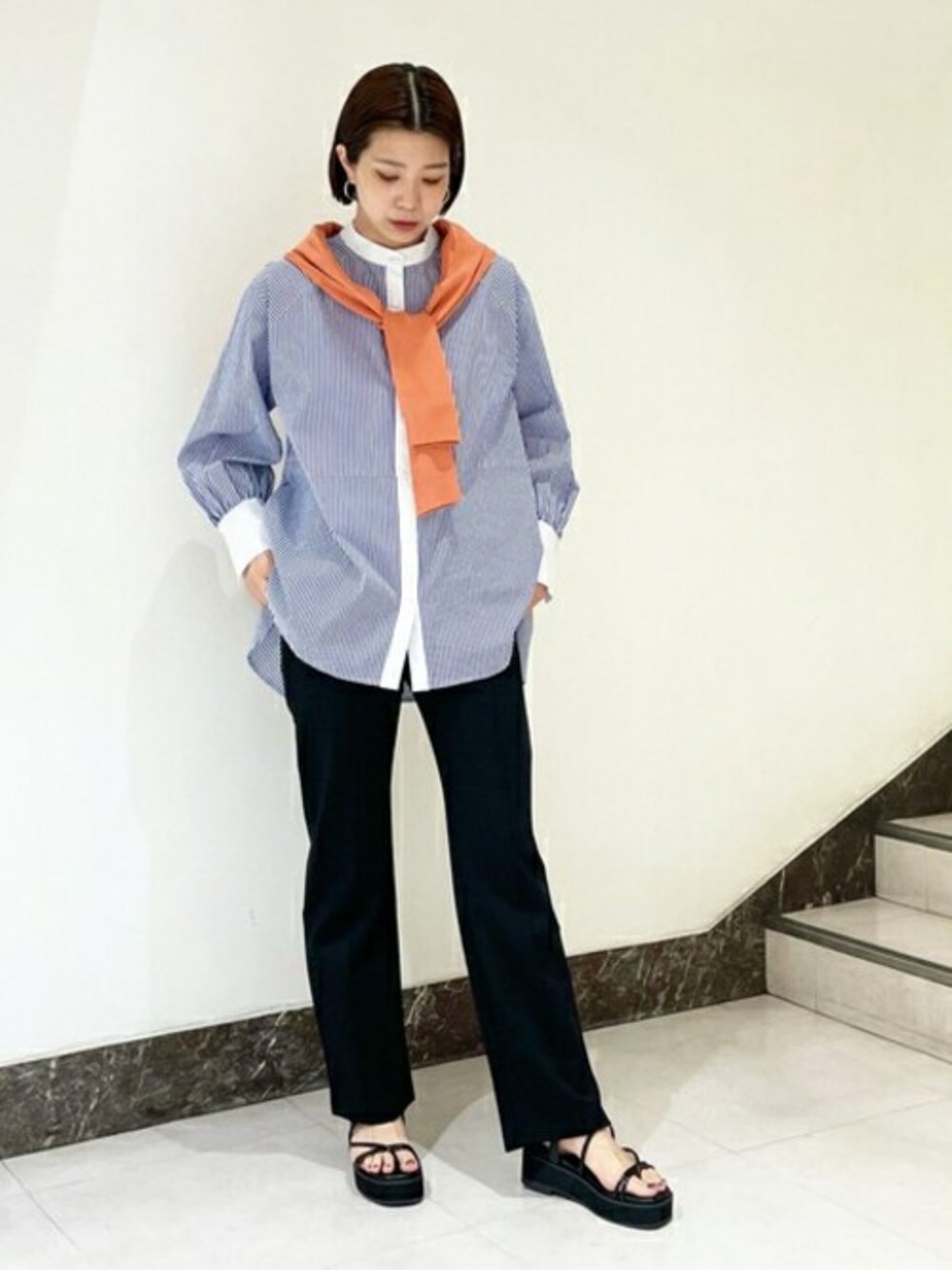 N. STAFF(N. Natural Beauty Basic* OFFICE)のシャツ/ブラウス「【追加生産】◆バックペプラムバンドカラーシャツ」を使ったコーディネート