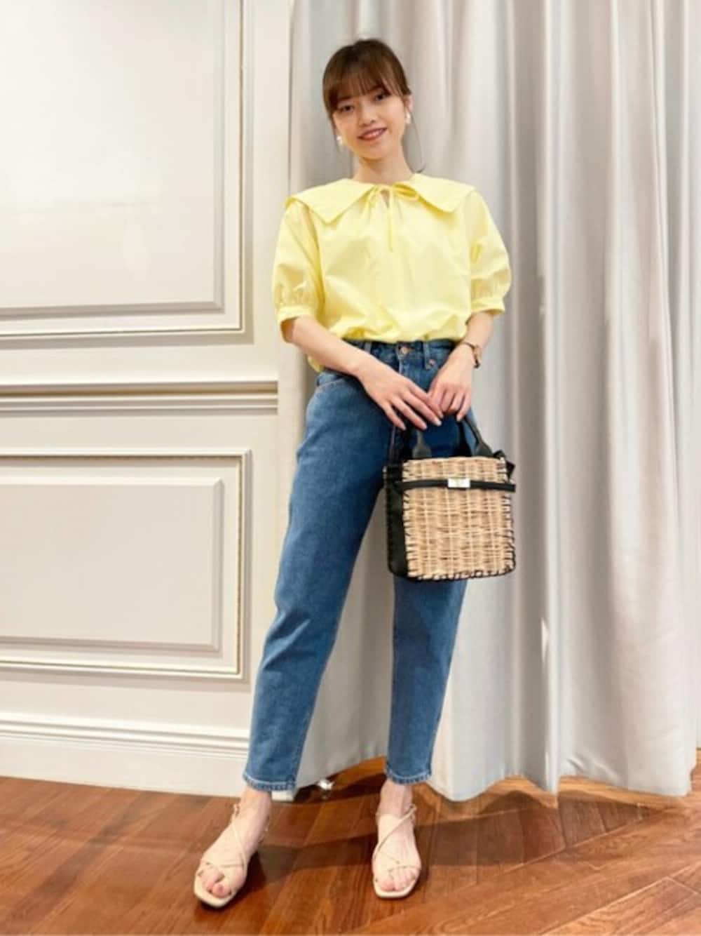 セーラーカラーが今季らしい爽やかなスタイリングです♪細いストラップのサンダルを合わせることで幼くならず、若々しい印象になります◎首元のリボンはあえて結ばずラフに着こなすのもおすすめです!