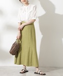 麻混×麻スカート 季節感のある麻混素材のマーメイドスカートは、シルエットがとにかく綺麗です!腰周りはすっきり裾にかけての広がりがポイントです!後ろがゴムのため履き心地も抜群です◎総針ニットはオンオフ使える万能アイテムです!