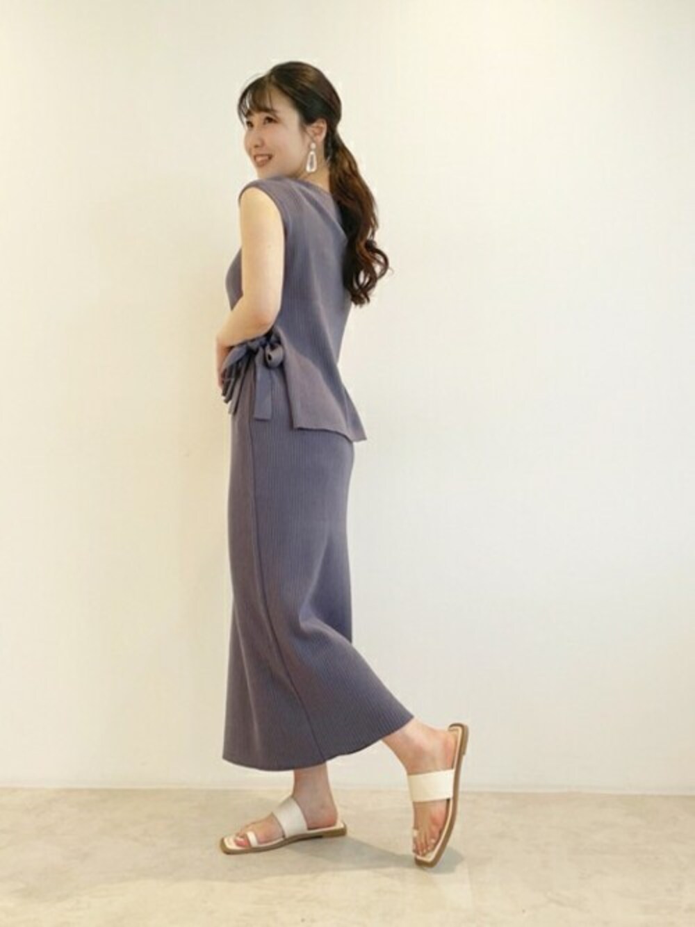 グレイッシュなブルーのカラーがset upのワントーンは勿論、お手持ちの物とも合わせやすい! SKはKT素材でもラインを拾わないので安心◎