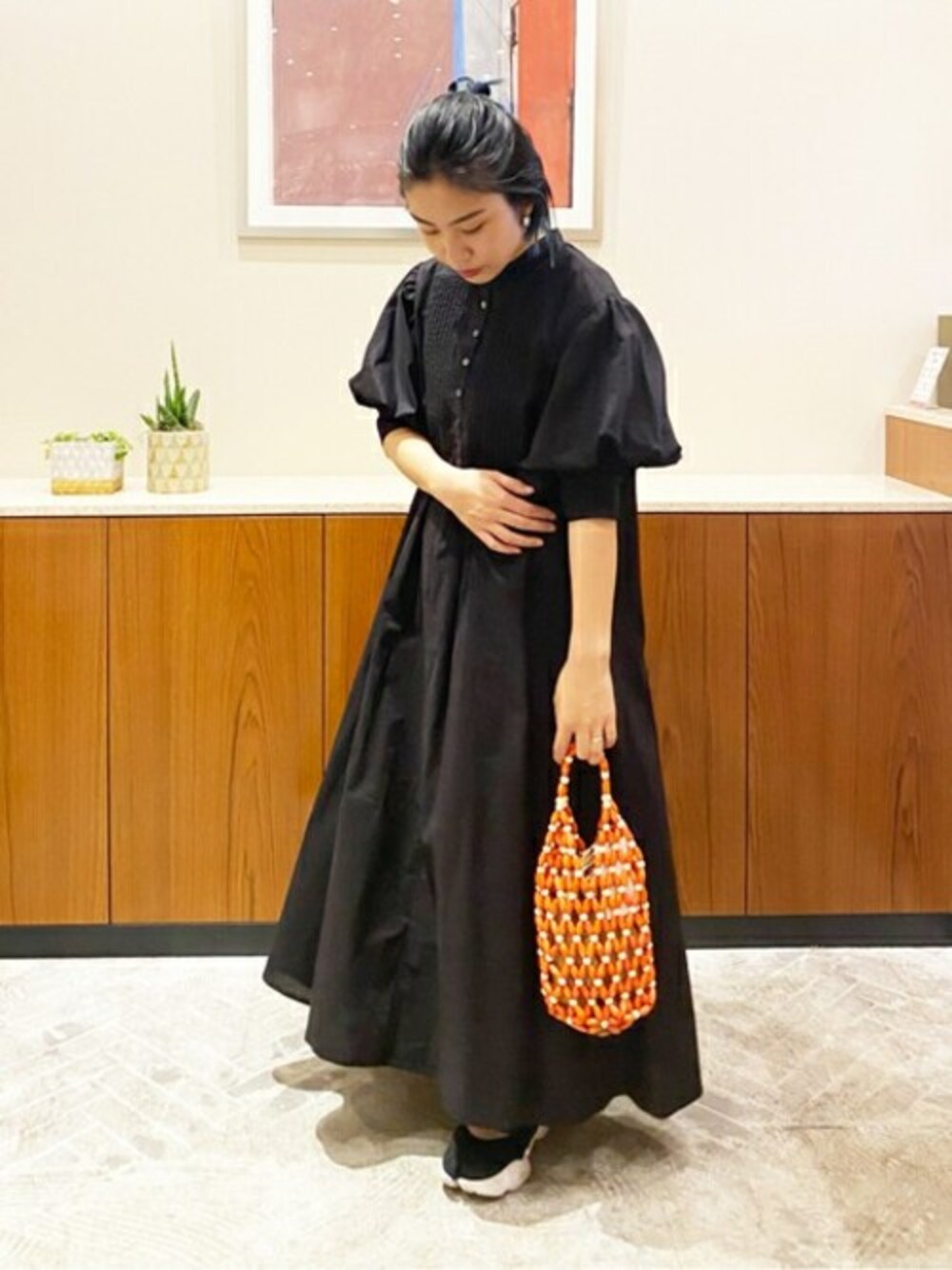サラッと可愛いワンピースが入荷しました!ピンタックを施したシャツ風のデザインにお袖はぽわっとパフスリーブになっているので黒でもキツくなり過ぎず着て頂けます◎