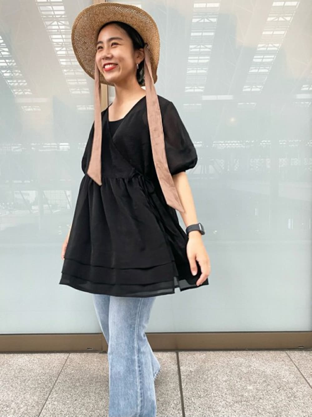 シースルーで涼しげなブラウスが入荷しました!ブラックはラメも入っていて他の色とは違う可愛さがあります◎大人カジュアルなコーディネートはいかがでしょうか。